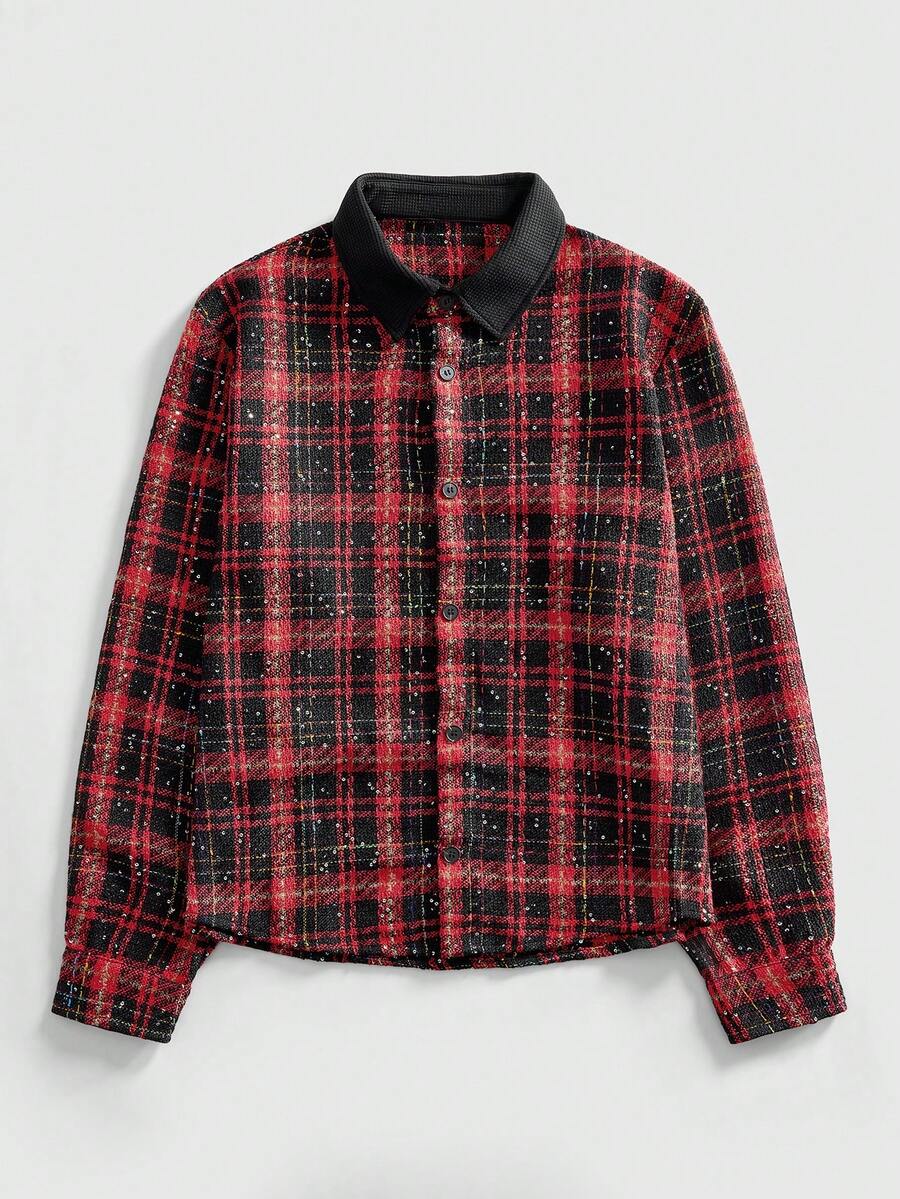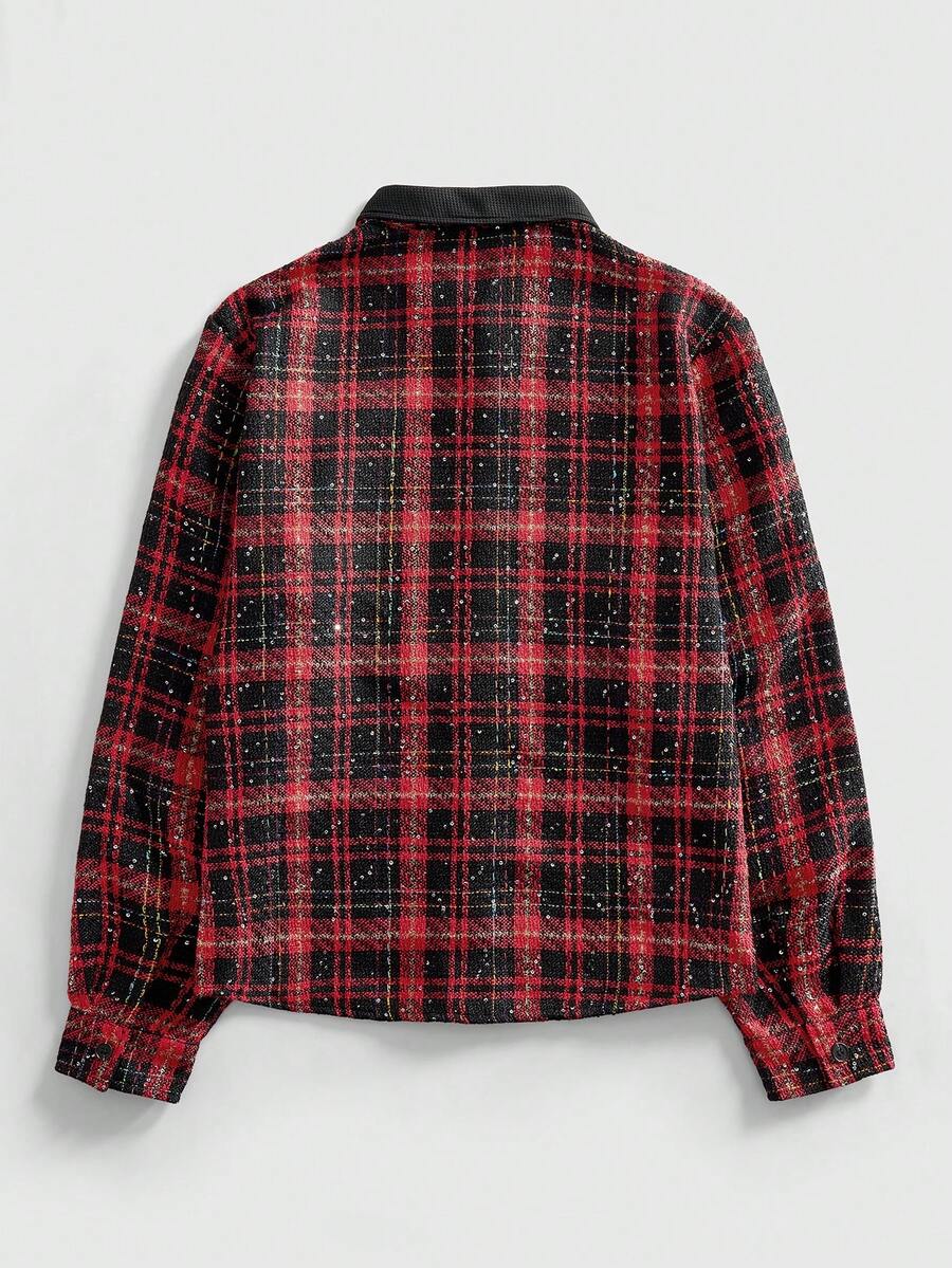 Prep Men's Autumn Fashionable Plaid Sequin Decorated Long Sleeve Jacket