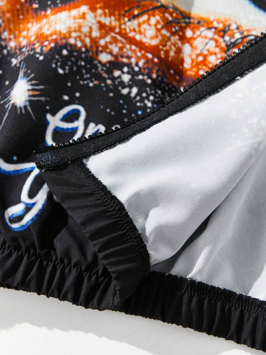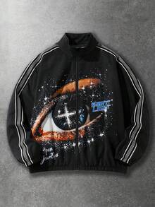 Street Life Men's Autumn Letter & Eye Print Zip-Up Casual Jacket