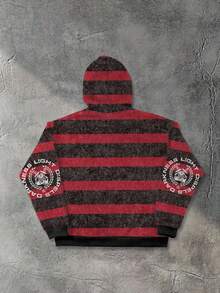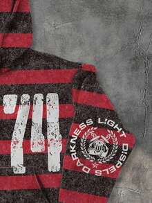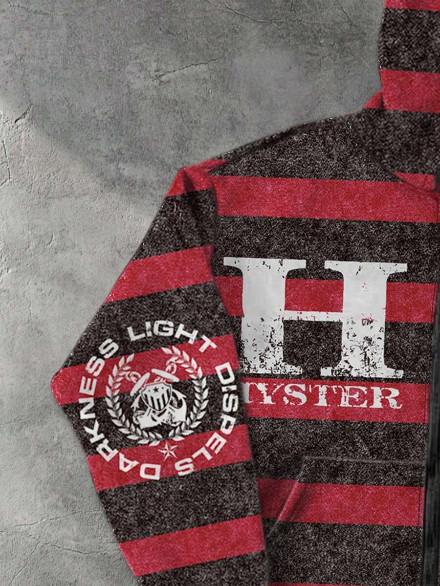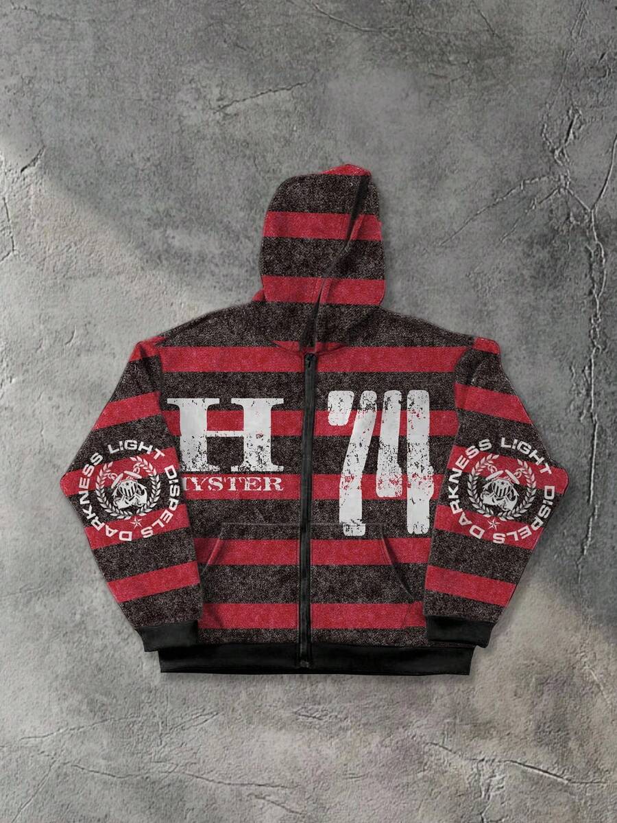 Street Life Men's Autumn Letter & Striped Long Sleeve Zip-Up Casual Hoodie