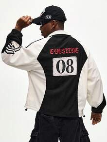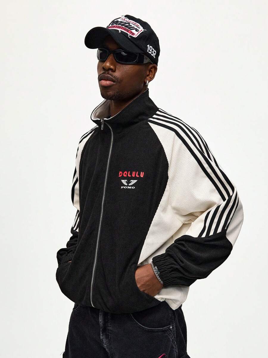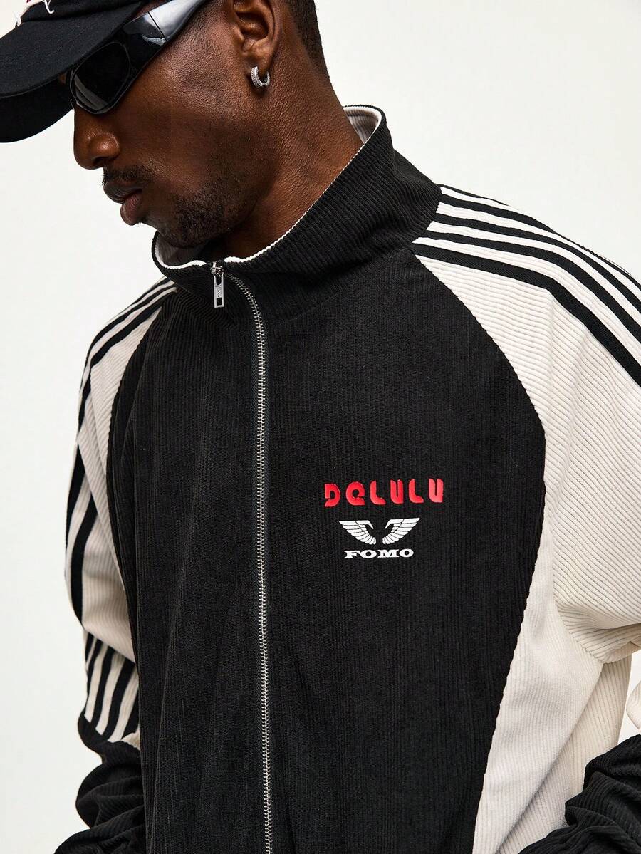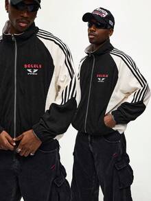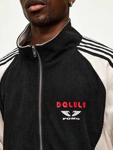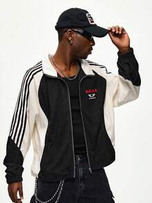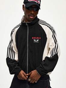 Street Life Men's Autumn Letter & Striped Long Sleeve Zip-Up Casual Jacket