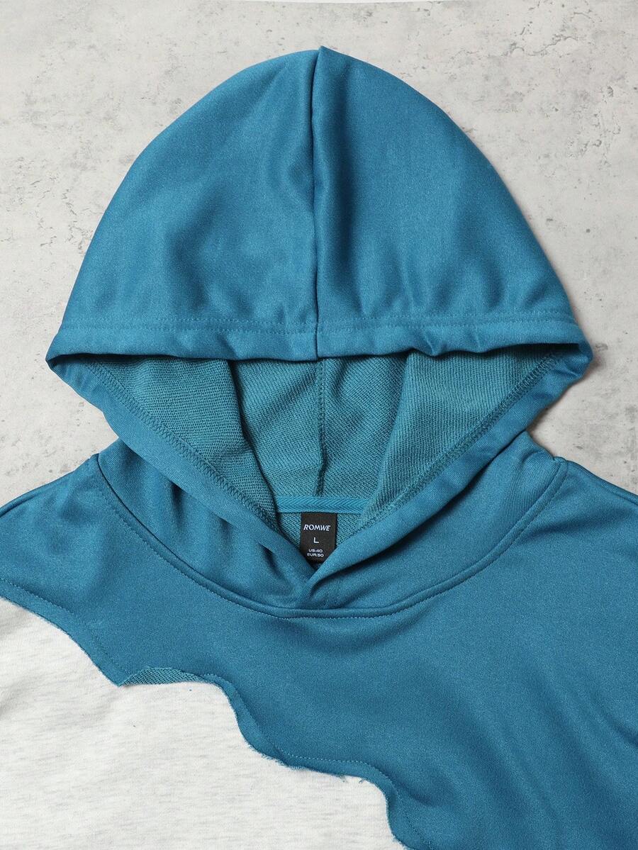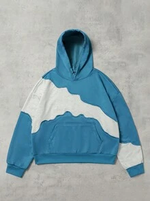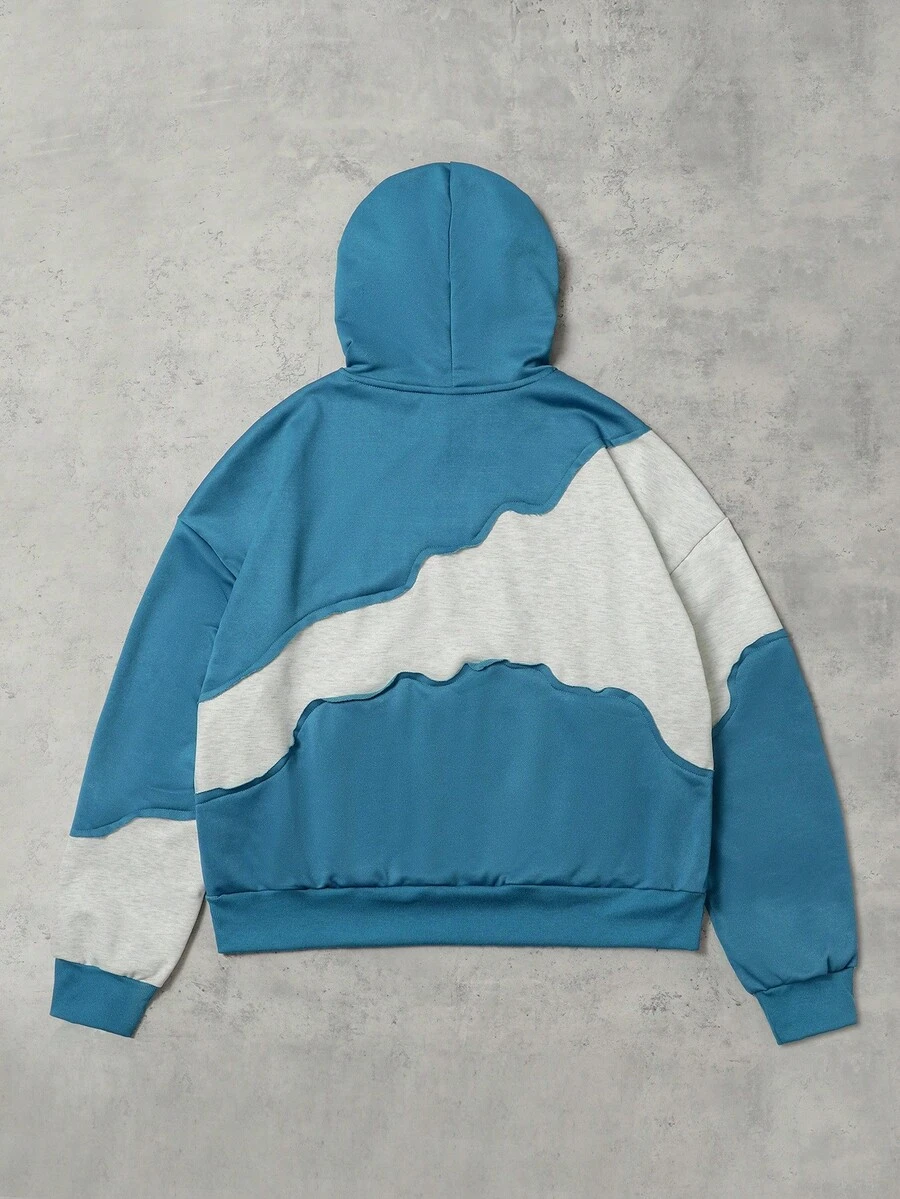Street Life Men's Autumn Long Sleeve Pocket Contrast Color Patchwork Loose Hoodie