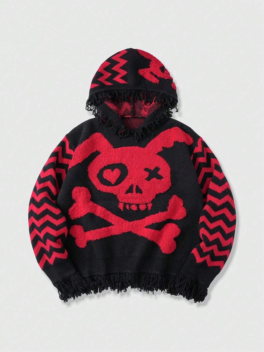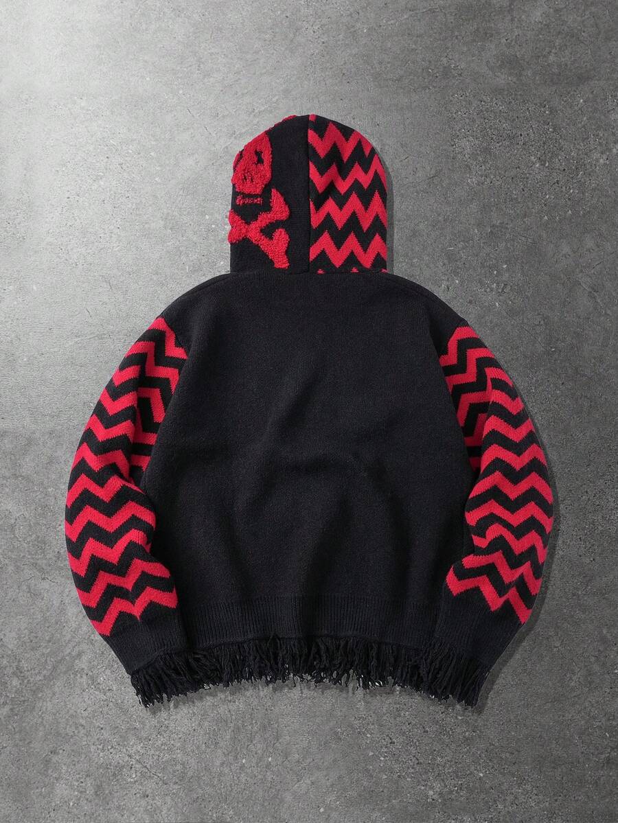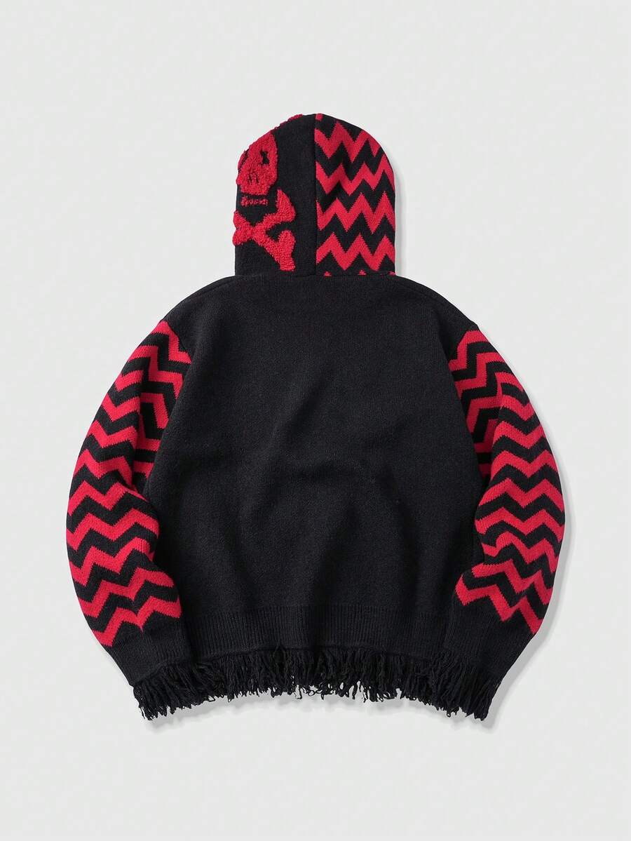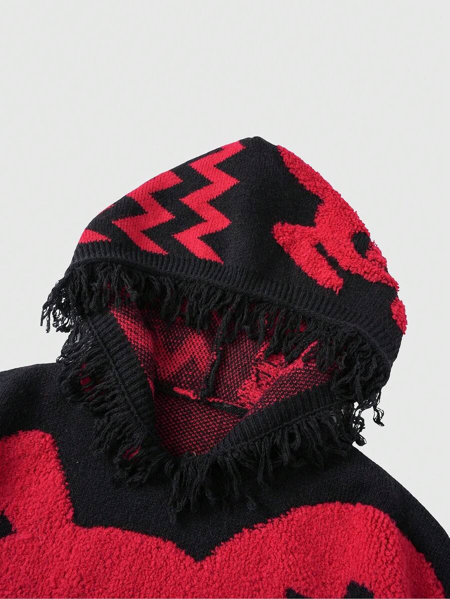 Street Life Men's Autumn/Winter Fashion Tasseled Jacquard Knit Hoodie Sweater