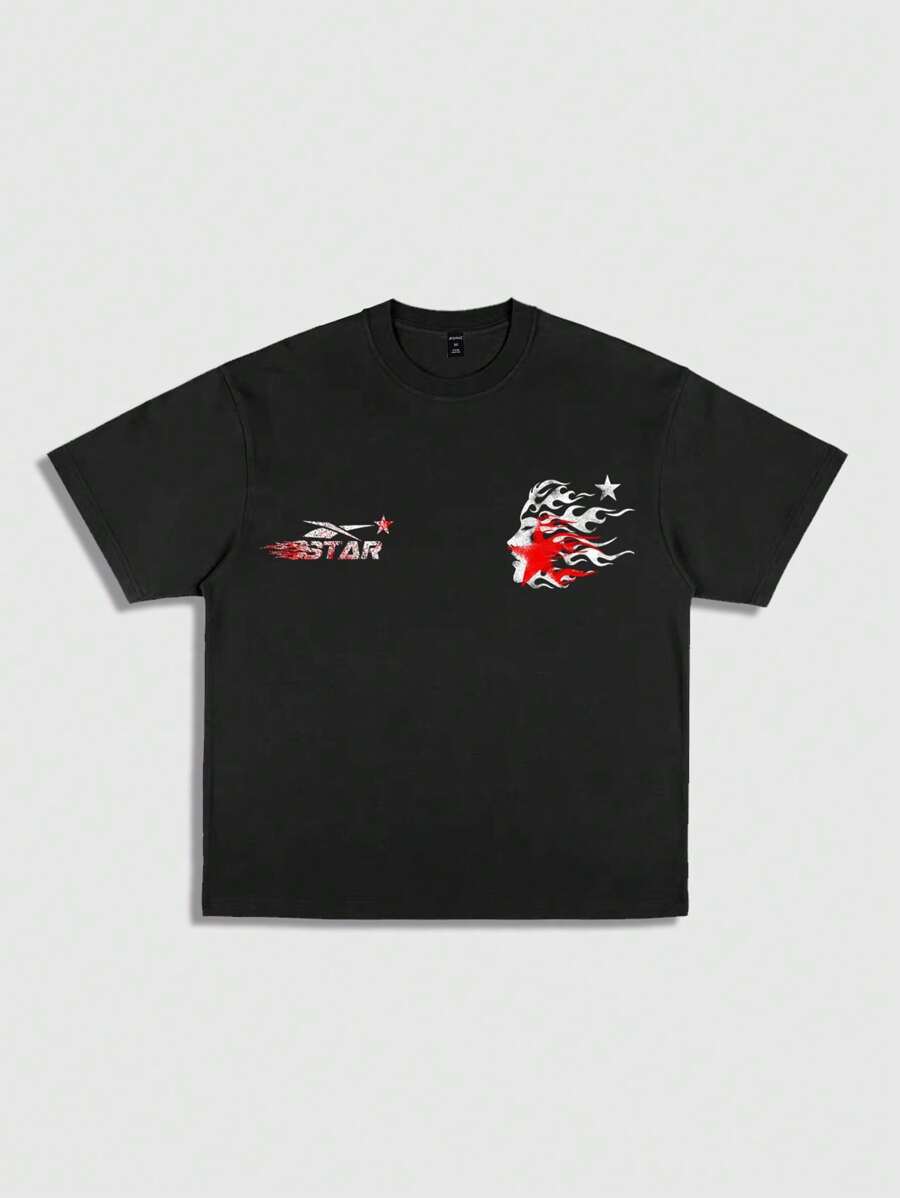 Street Life Men's Black Character 9806-01358 Water Print Graphic T-Shirt