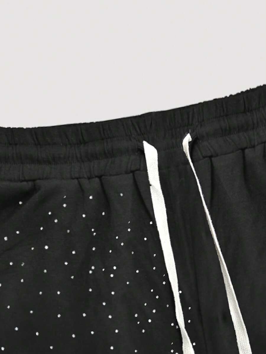 Street Life Men's Black Rhinestone Lip Print Star Drawstring Waist Shorts