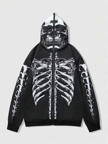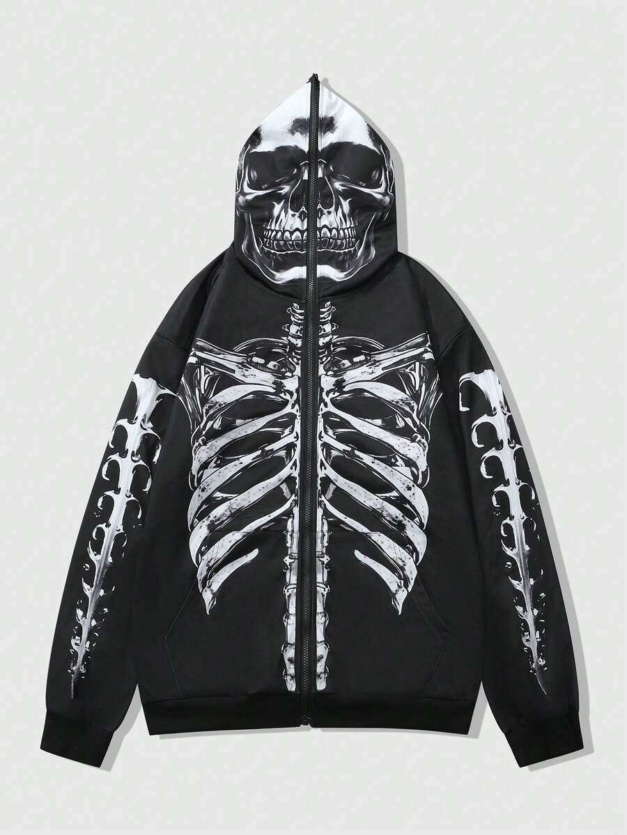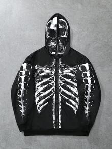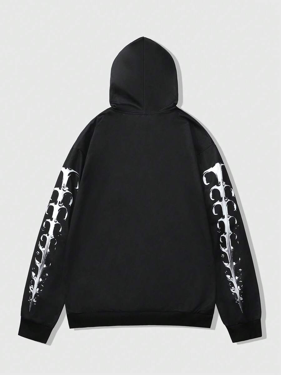 Street Life Men's Black Sweatshirt Sweatshirt With Skull Skeleton Print, Autumn/Winter