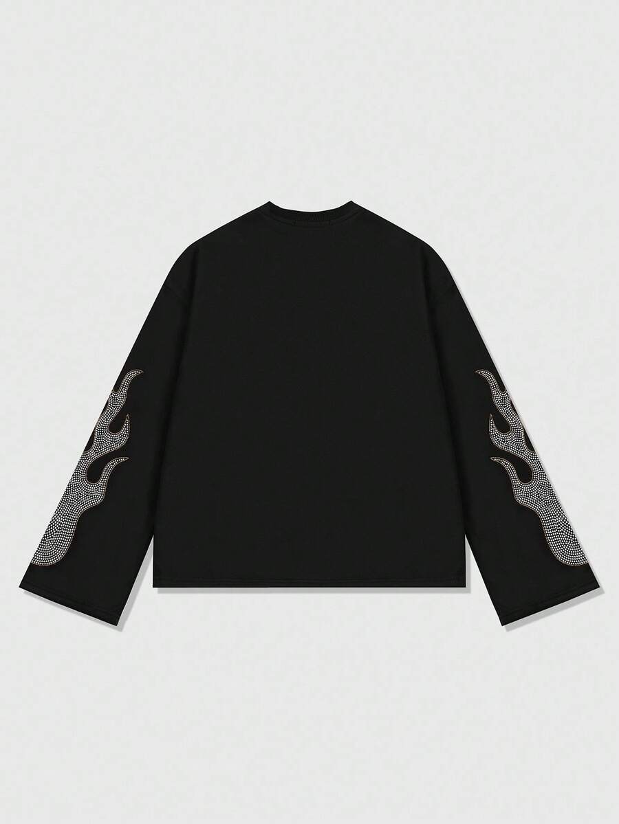 Street Life Men's Blurred Portrait Print Long Sleeve T-Shirt, Loose Cropped Fit, For Fall, 2000s Style