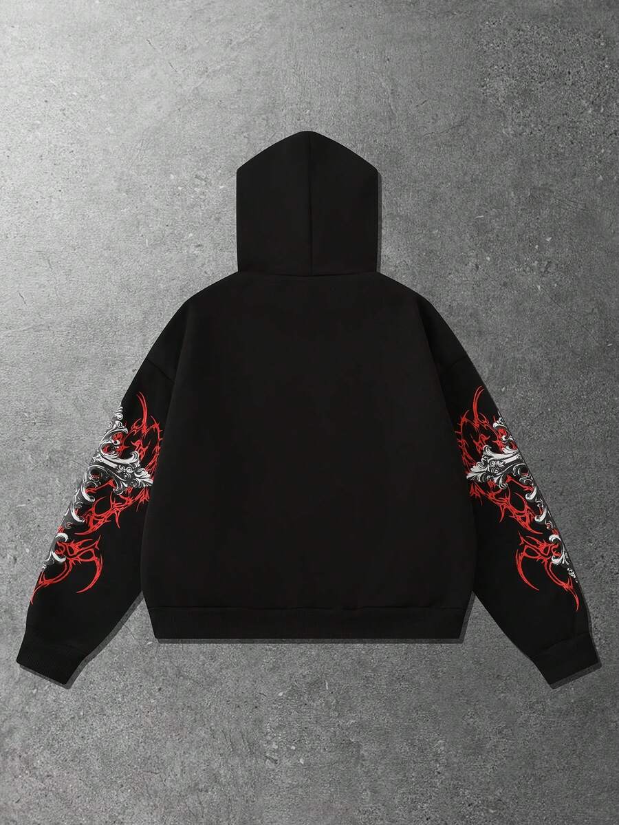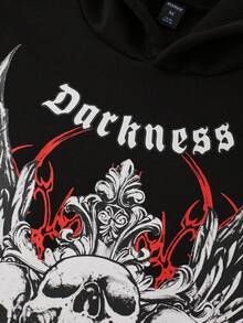 Street Life Men's Boxer Skull Character Print Loose Cropped Hoodie