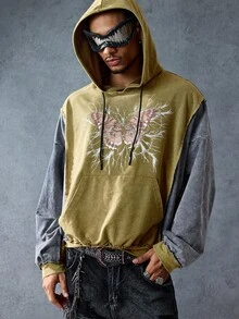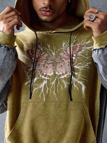 Street Life Men's Butterfly Graphic Print Contrast Color Drawstring Pocket Hoodie Sweatshirt