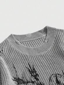 Street Life Men's Cartoon Character Pattern Crew Neck Loose Fit Casual Sweater , Fall Winter