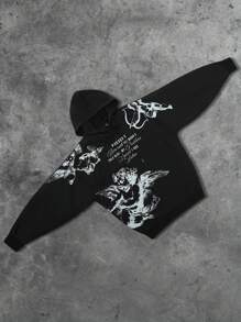 Street Life Men's Casual Angel Slogan Print Hoodie Sweatshirt Halloween , Fall Winter