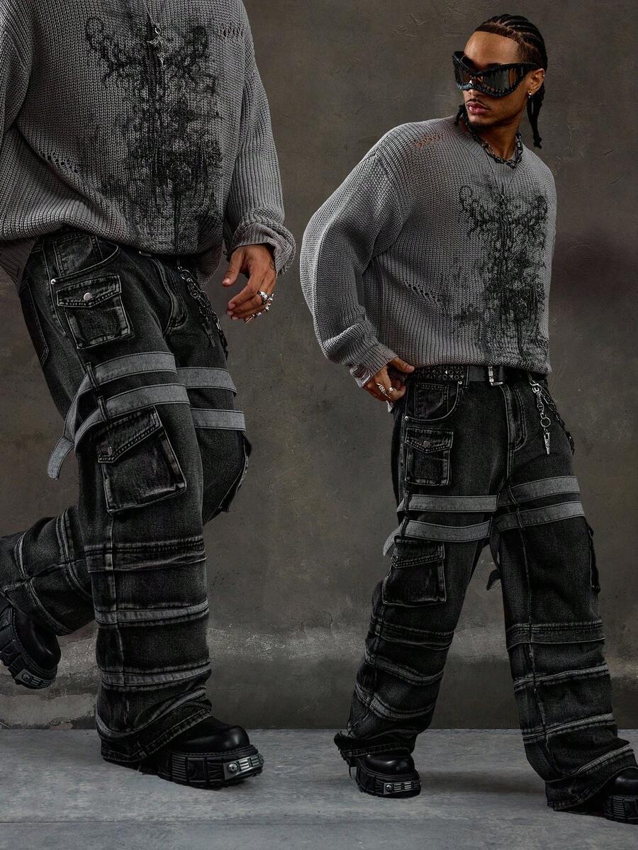 Street Life Men's Casual Avant Cargo Denim Jeans, Grunge