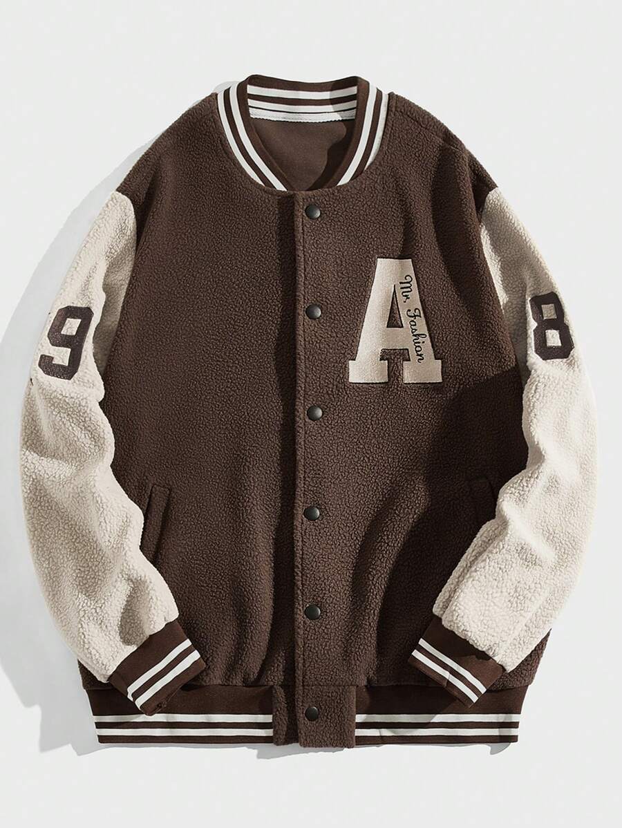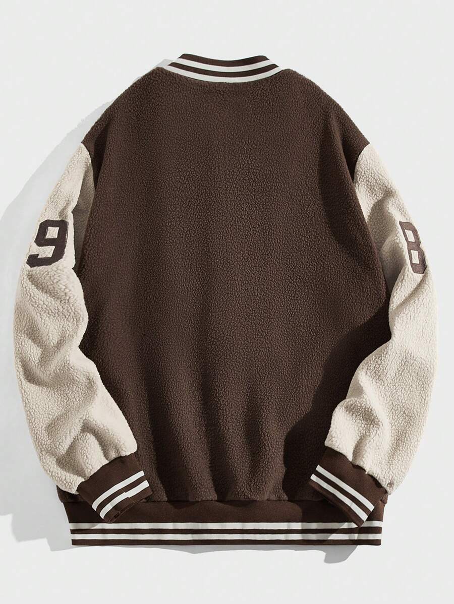 Street Life Men's Casual Coffee Color Baseball Jacket For Fall/winter