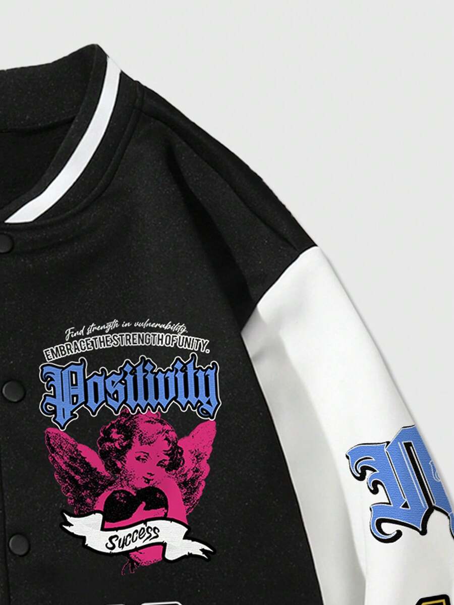 Street Life Men's Casual Colorblock Letter Print Jacket, Autumn/Winter