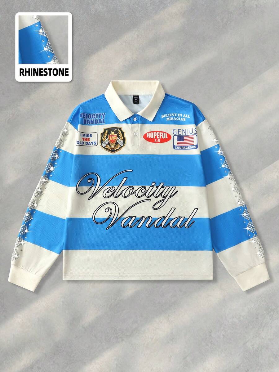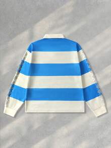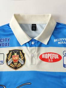 Street Life Men's Colorblock Striped Letter Print Polo Shirt Jersey, Autumn