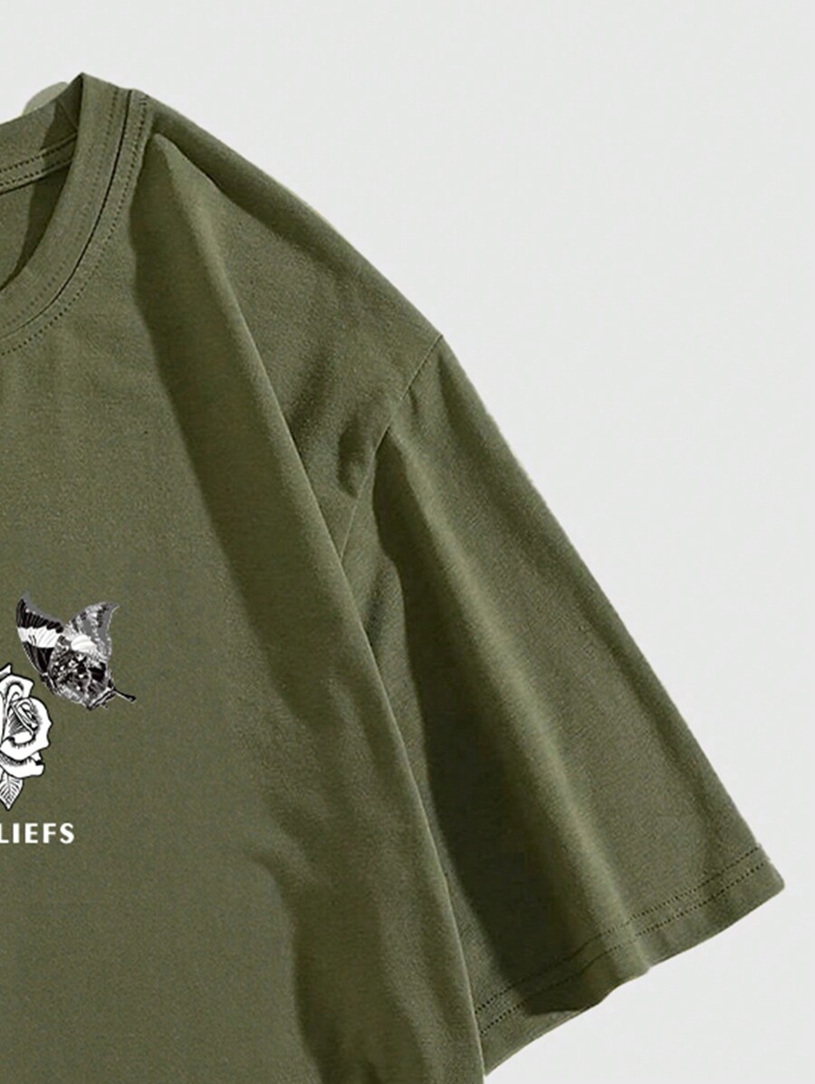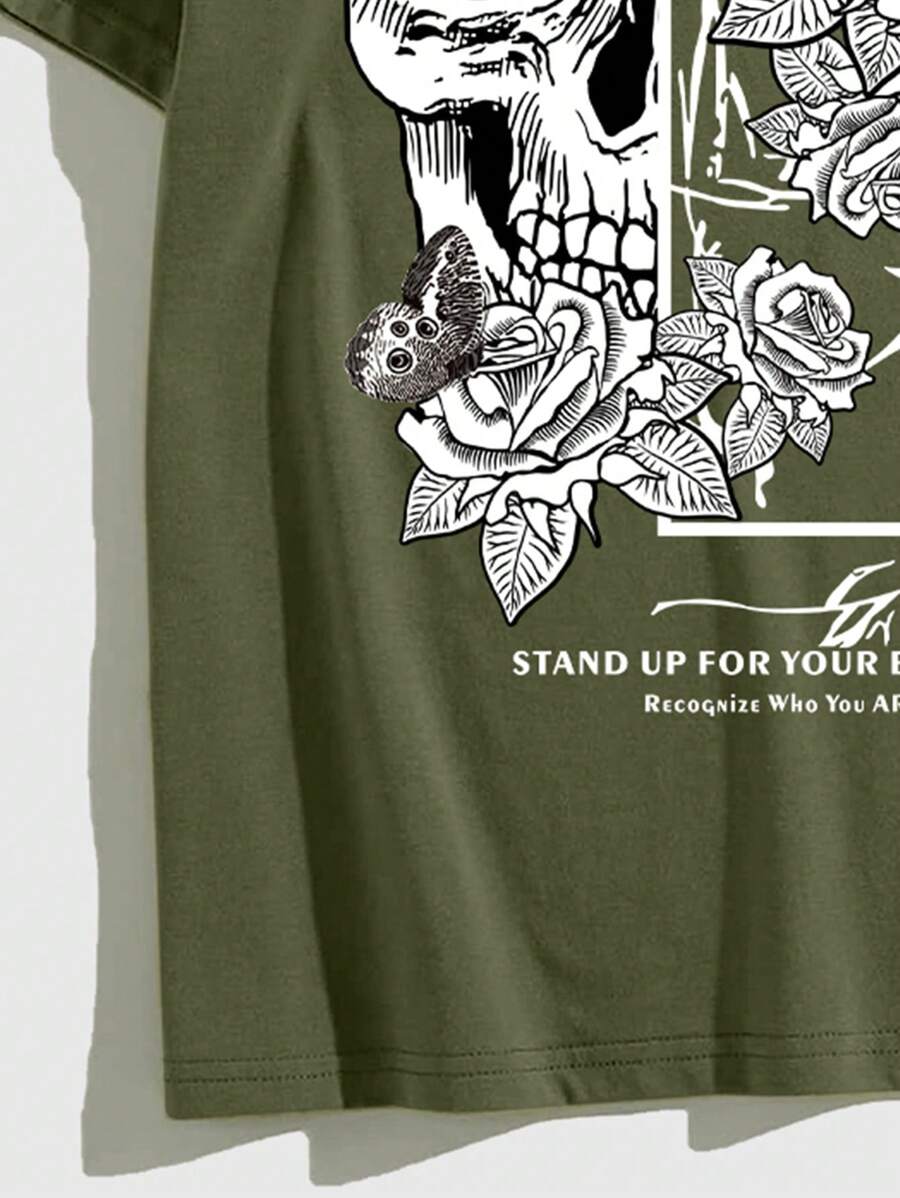 Street Life Men's Casual Crew Neck Short Sleeve T-Shirt With Slogan Skeleton Print
