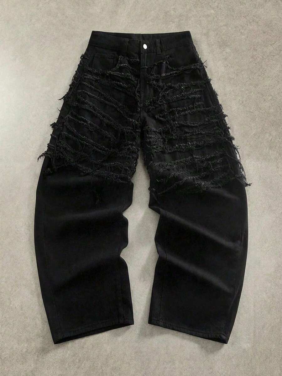 Street Life Men's Casual Everyday Loose Fit Jeans With Pockets, Button & Frayed Hem Design