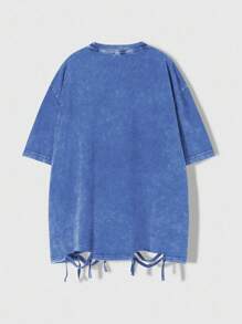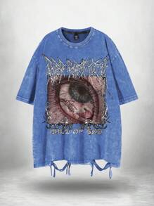 Grunge Punk Men's Casual Eye Print Distressed Hem Short Sleeve T-Shirt, Summer
