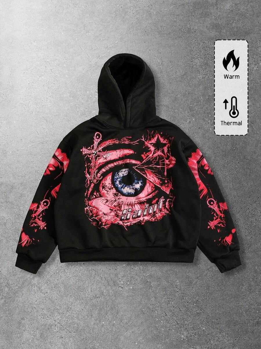 Street Life Men's Casual Eyeglasses Print Loose Fit Hoodie, Autumn/Winter