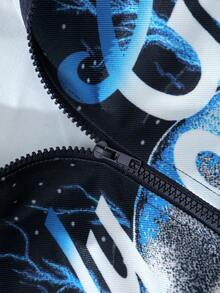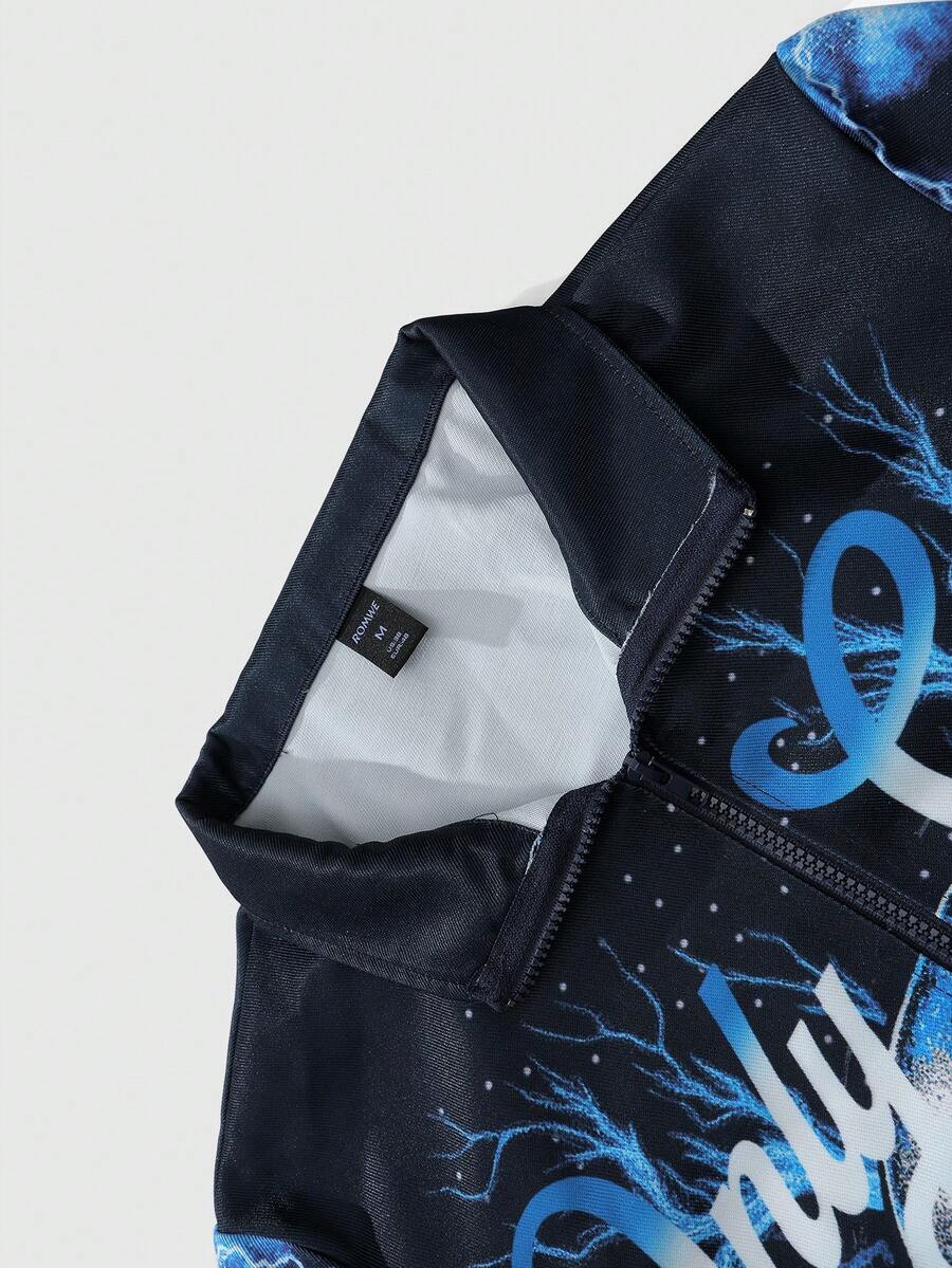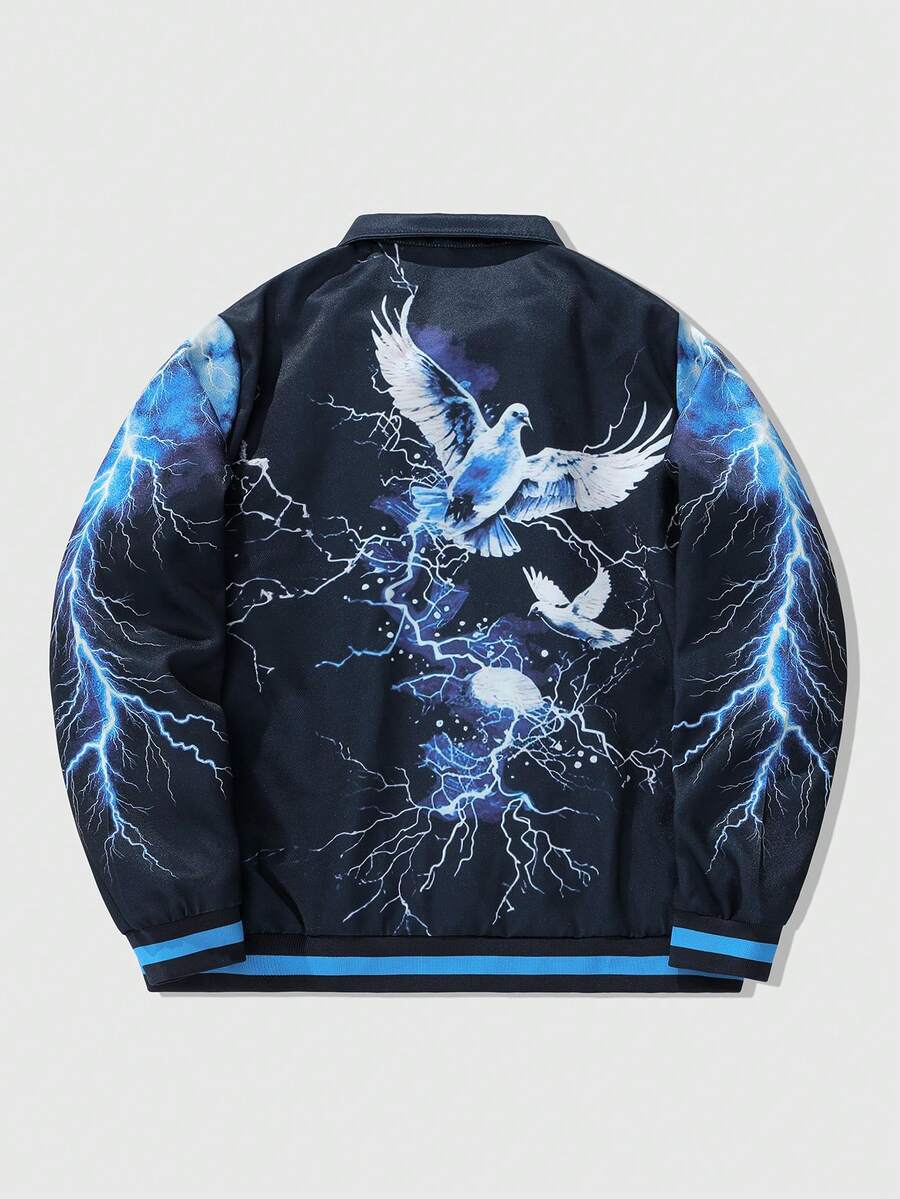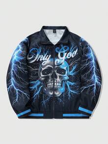 Street Life Men's Casual Fashion Street Punk Halloween Skeleton & Lightning Graphic Zip-Up Jacket, Spring/Autumn