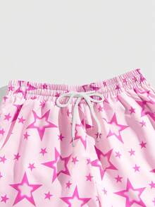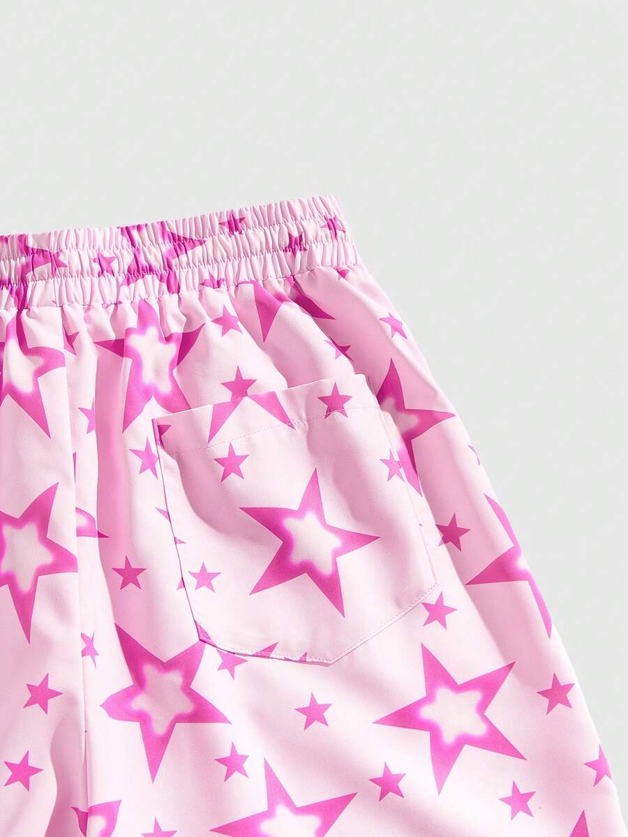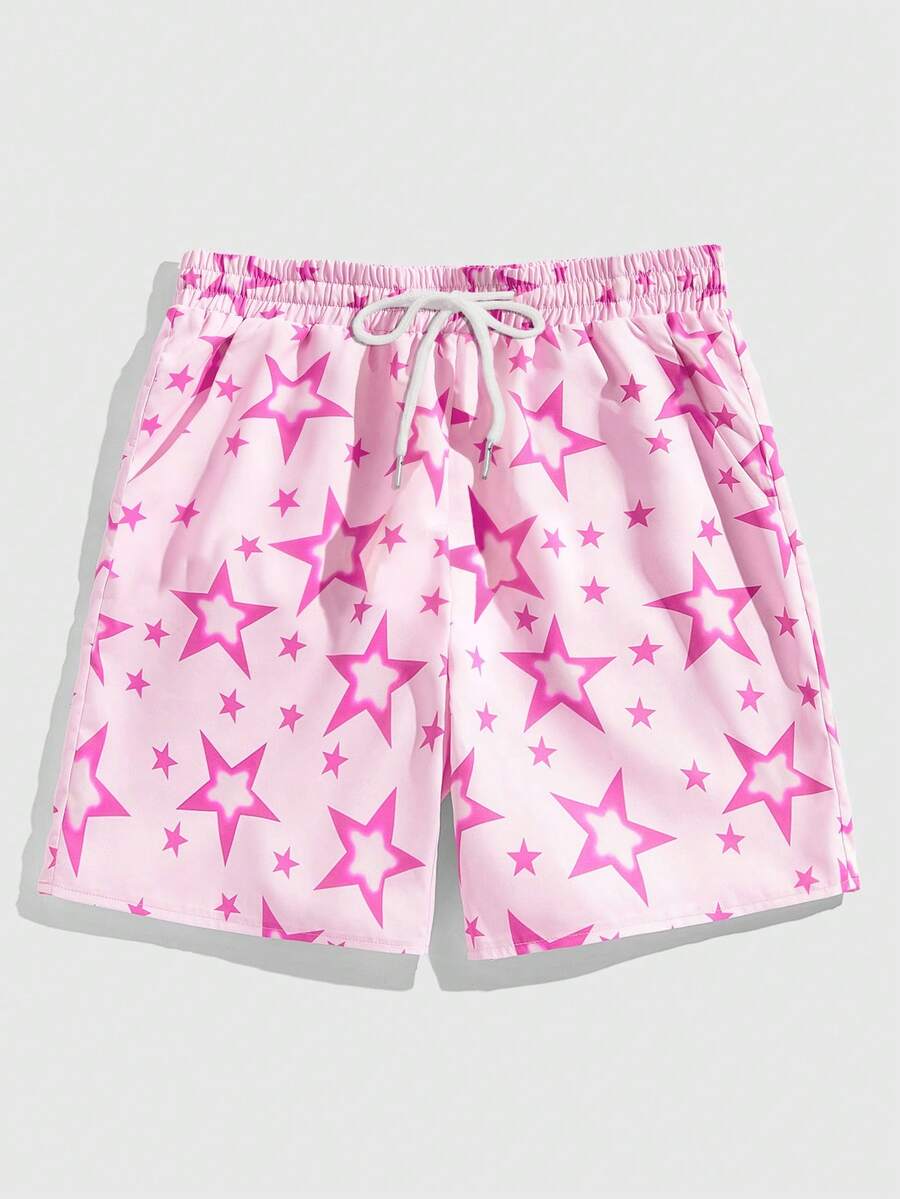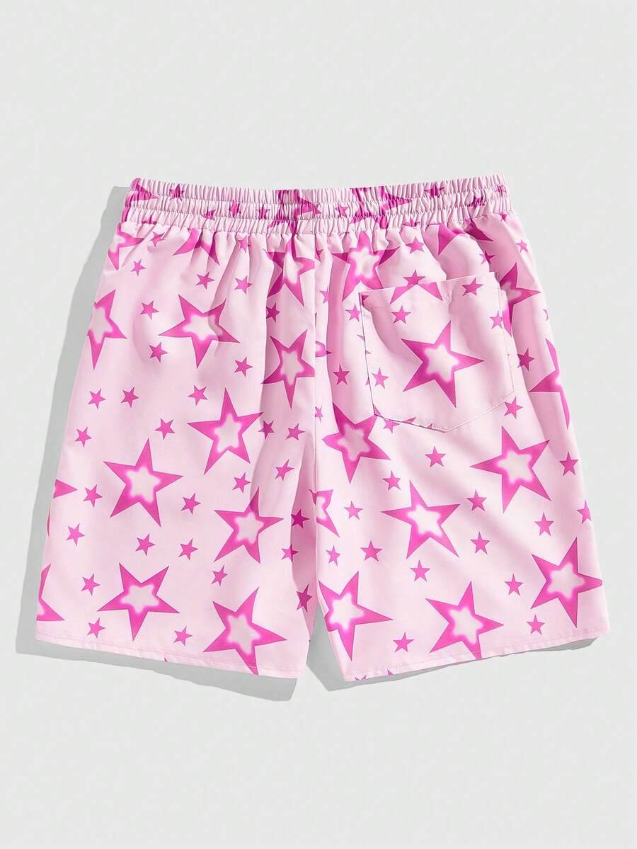 Street Life Men's Casual Fit Drawstring Waist Shorts With Five-Pointed Star Print And Side Pockets