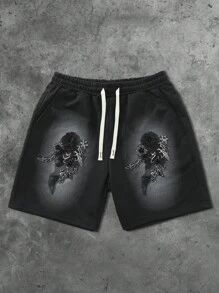Street Life Men's Casual Floral Embroidery Patch Shorts, Streetwear Style