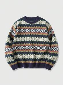 Street Life Men's Casual Geometric Jacquard Knit Sweater, Autumn/Winter