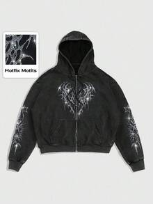Street Life Men's Casual Gothic Everyday Rhinestone Zipper Front Drawstring Hoodie Sweatshirt , Fall