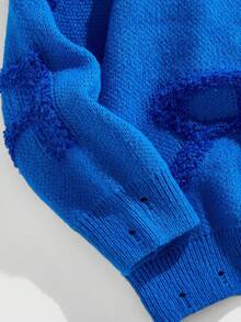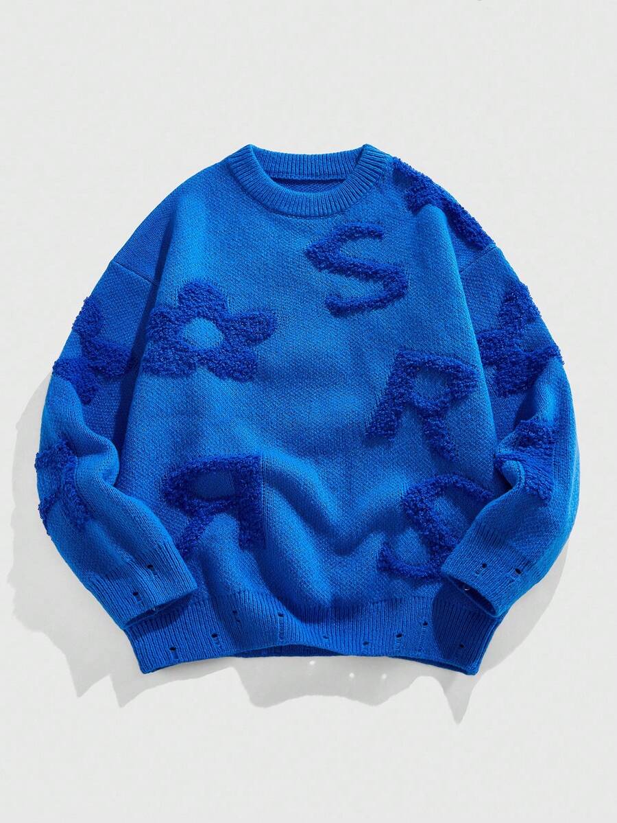 Street Life Men's Casual Letter Embroidered Crew Neck Long Sleeve Loose Knit Sweater, Autumn