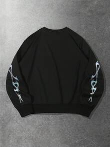 Street Life Men's Casual Loose Fit Alien Letter Print Crew Neck Long Sleeve Sweatshirt