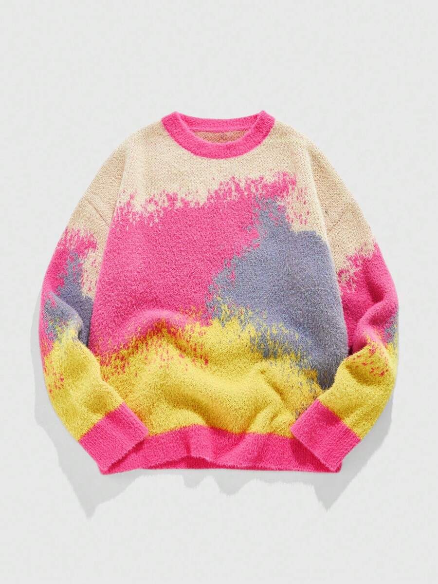 Street Life Men's Casual Loose Fit Colorblock Crew Neck Long Sleeve Sweater, Autumn/Winter