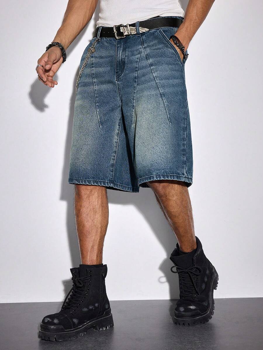 Street Life Men's Casual Loose Fit Pockets Denim Shorts