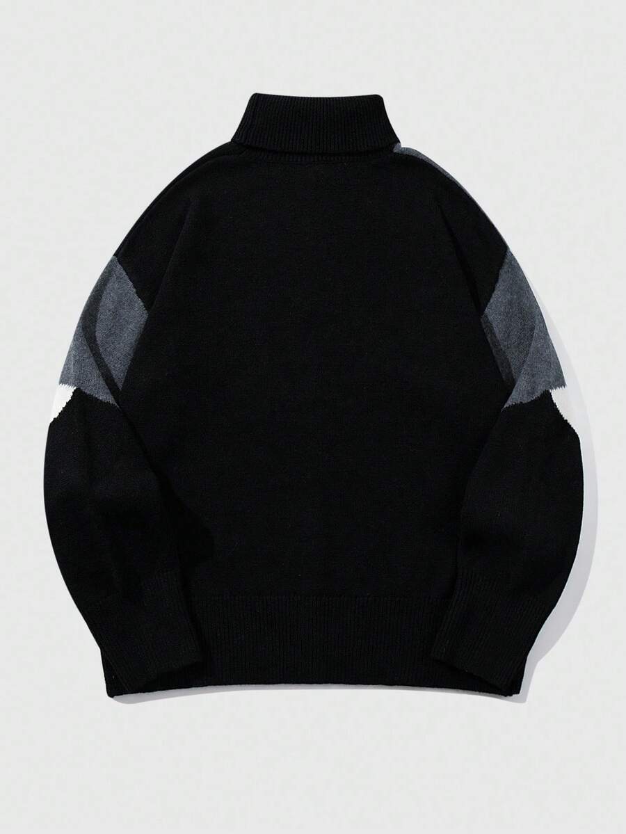 Street Life Men's Casual Loose Fit Turtleneck Contrast Color Sweater , Fall Winter