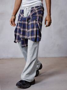 Street Life Men's Casual Plaid Patchwork Drawstring Waist 2 In 1 Pants