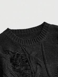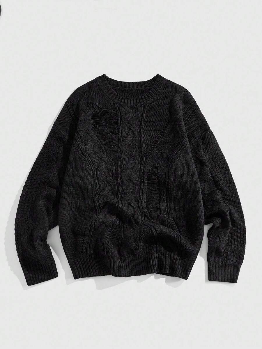 Street Life Men's Casual Solid Color Long Sleeve Retro Cable Knit Sweater, Grunge Style, Fall/Winter