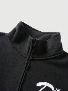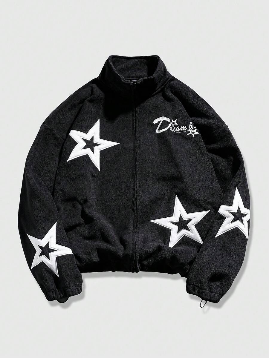 Street Life Men's Casual Star Embroidered Zip-Up Stand Collar Jacket, Autumn