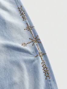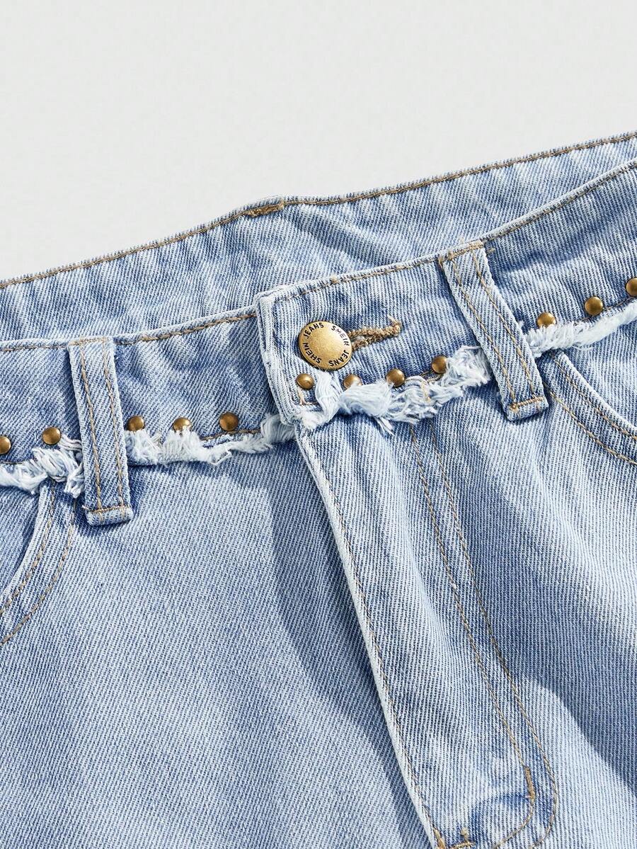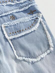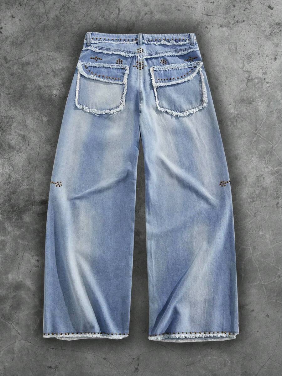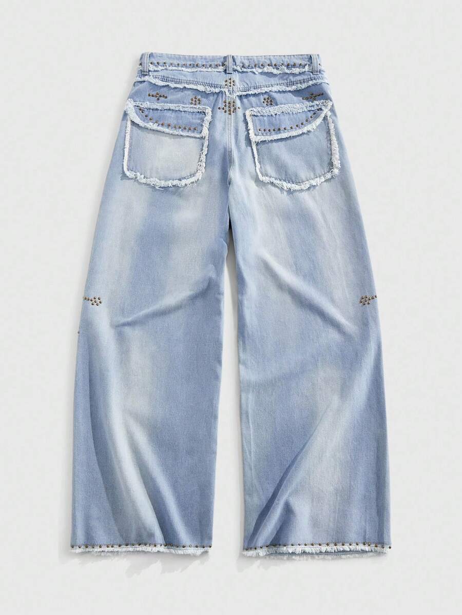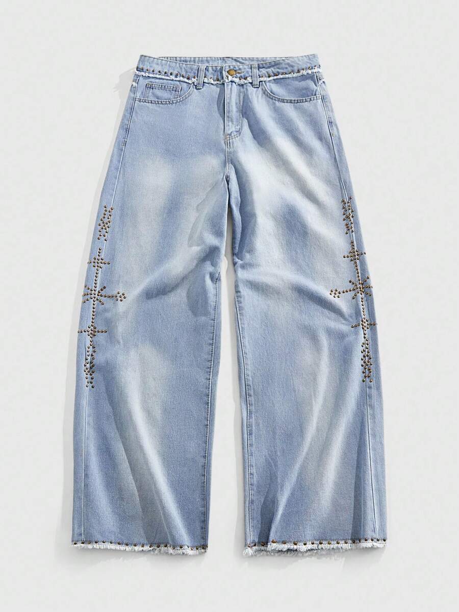 Street Life Men's Casual Street-Style Washed Slant Pocket Frayed Rivet Detail Denim Jeans