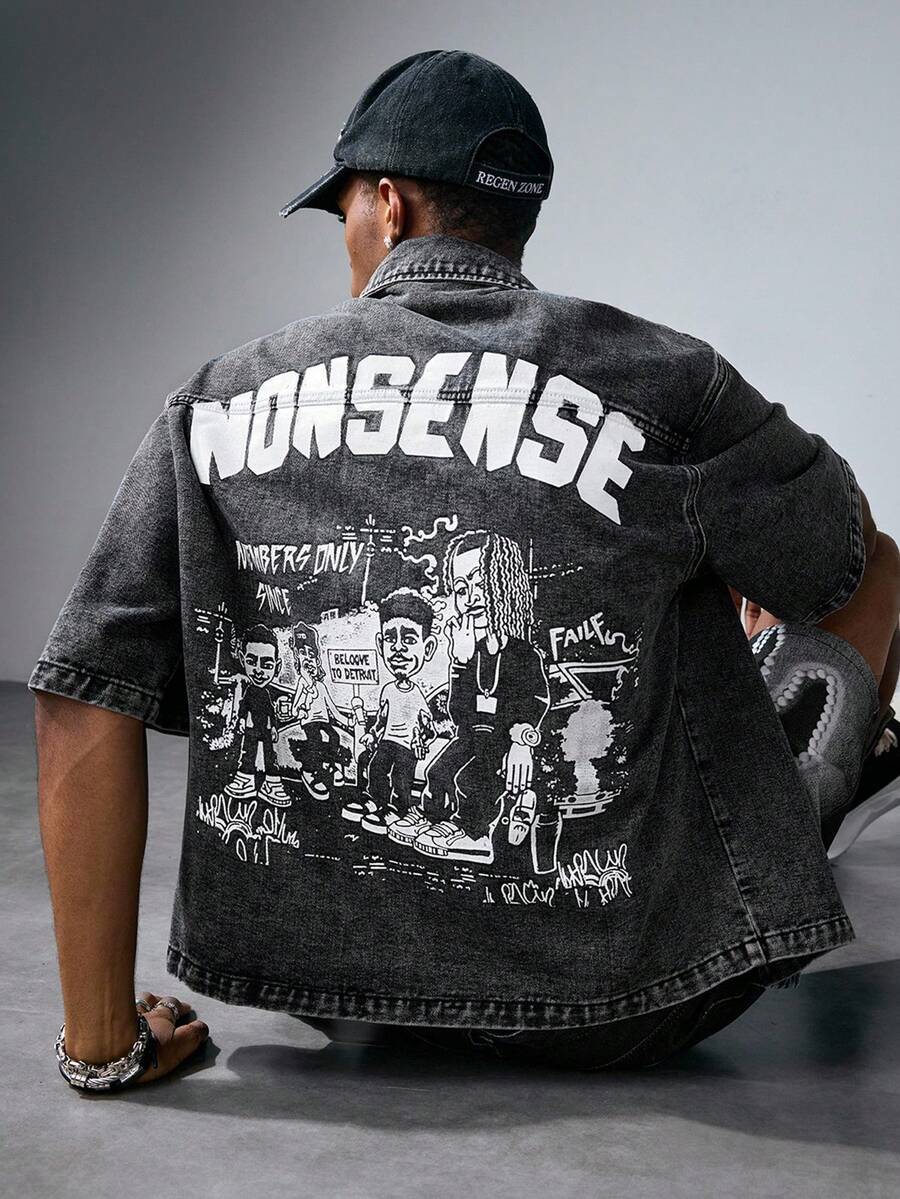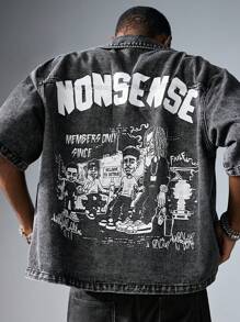Street Life Men's Casual Washed Cartoon Print Denim Jacket