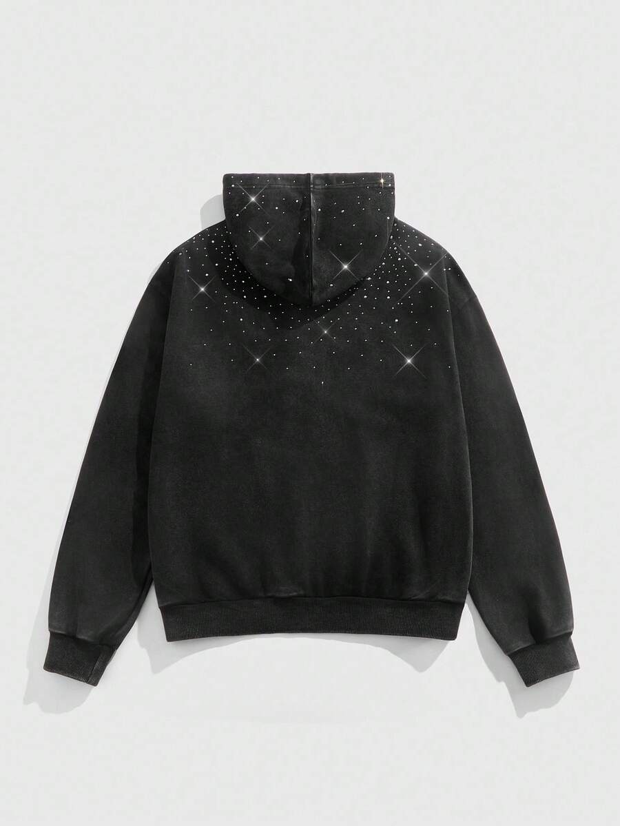 Street Life Men's Casual Washed Rhinestone Hoodie Sweatshirt