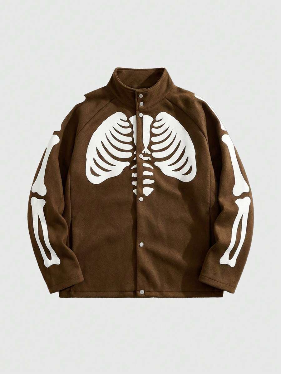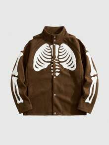 Street Life Men's Casual Wool Blend Skeleton Print Jacket, Autumn/Winter