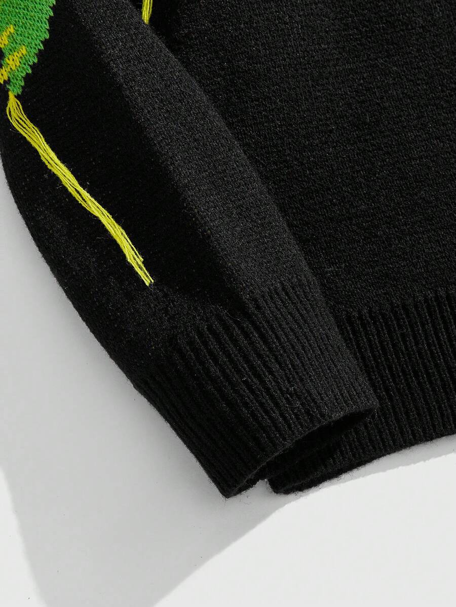 Street Life Men's Casual Young Crew Neck Long Sleeve Pullover Knitted Star Pattern Sweater, Everyday Black