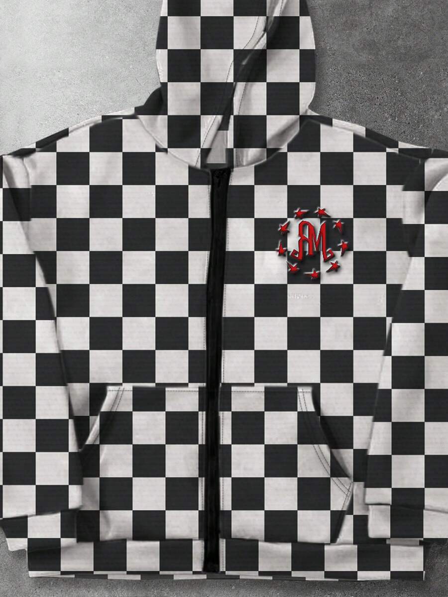 Street Life Men's Checkered Print Zip-Up Hoodie