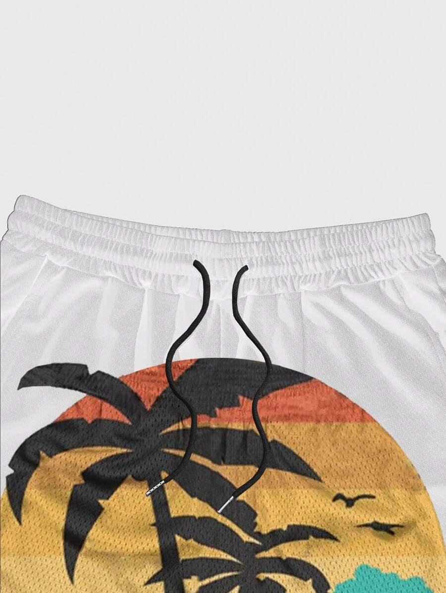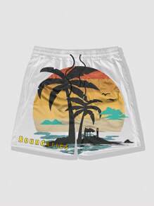 Street Life Men's Coconut Tree Printed Drawstring Waist Summer Holiday Shorts