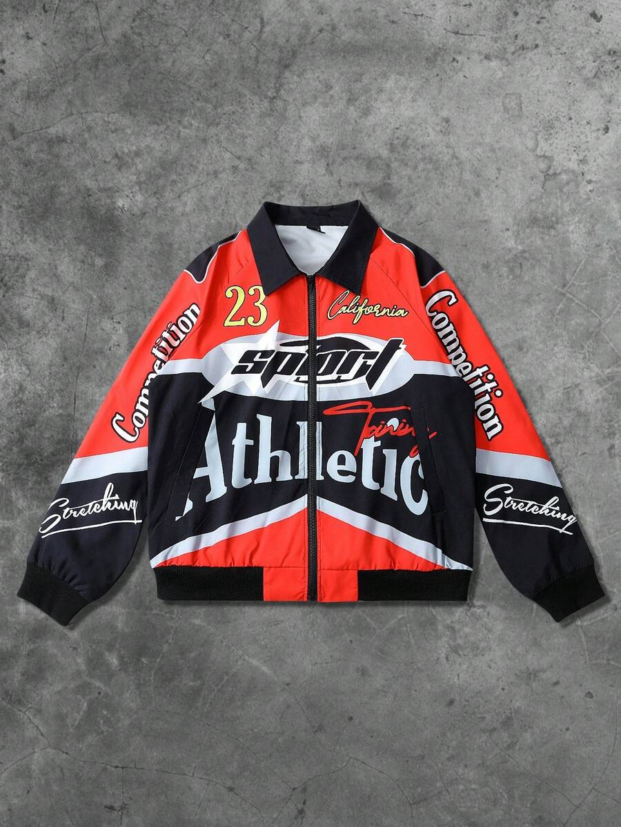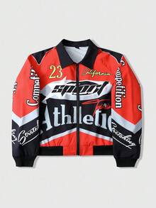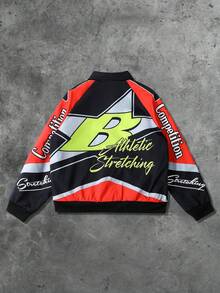 Street Life Men's Colorblock Letter Print Jacket, Spring/Autumn