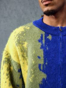 Street Life Men's Contrast Color Round Neck Long Sleeve Casual Jacquard Knit Cardigan, Autumn/Winter