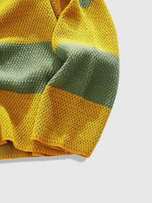 Street Life Men's Contrast Color V-Neck Long Sleeve Knit Sweater, Fall Winter