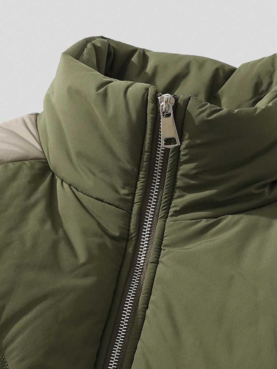 Street Life Men's Contrast Zipper Front Raglan Sleeve Thick Winter Jacket