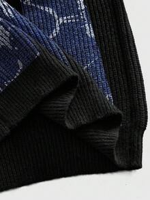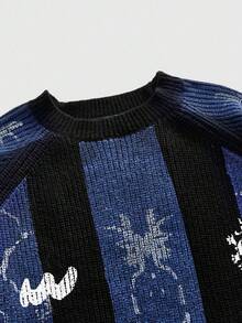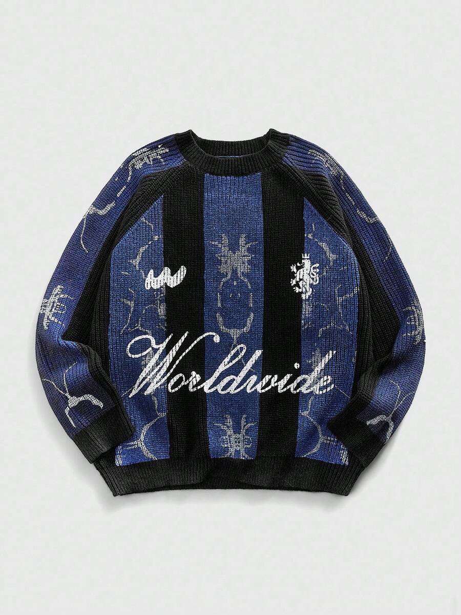 Street Life Men's Crew Neck English Graphic Contrast Color Casual Pullover Sweater