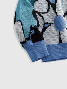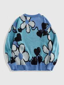Street Life Men's Crew Neck Floral Contrast Color Knit Sweater , Fall Winter