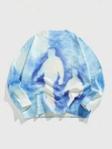 Street Life Men's Crew Neck Human Print Knit Sweater, Street Fashion, Fall/Winter