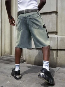Street Life Men's Cross Print Rhinestone Embellished Denim Shorts